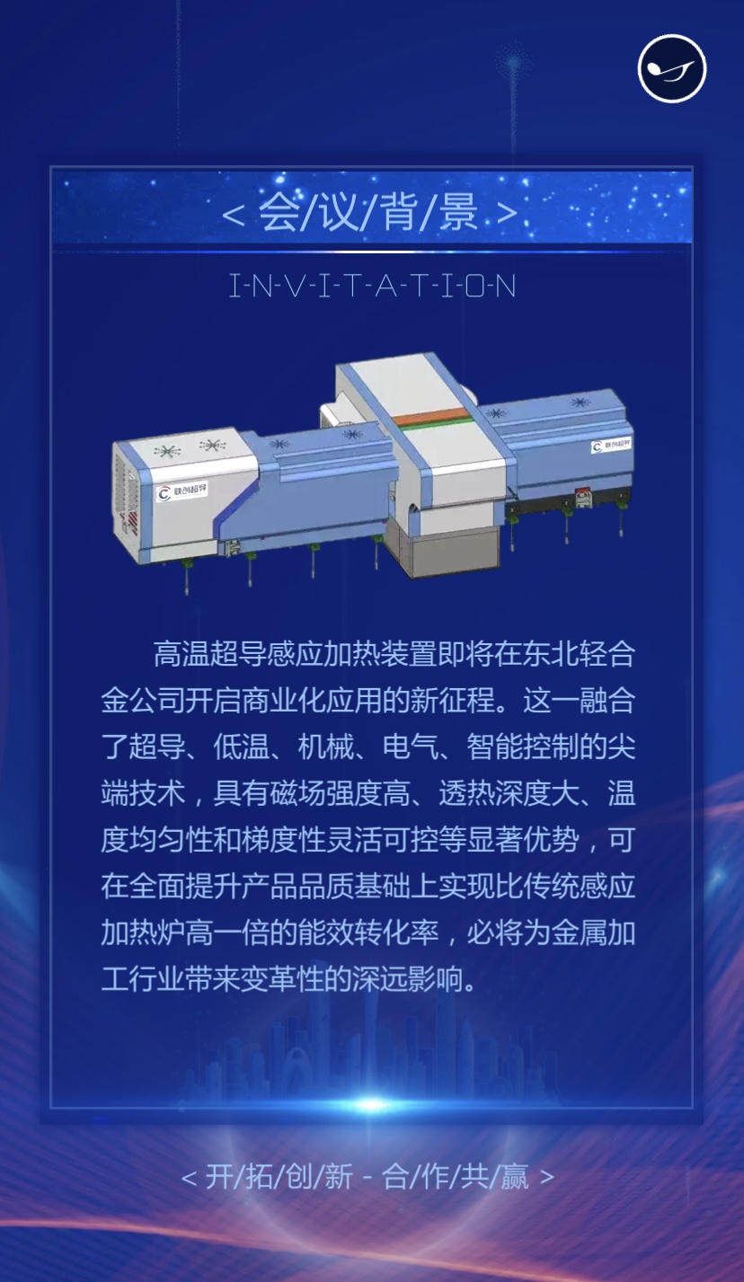 世界首臺MW級高溫超導(dǎo)感應(yīng)加熱裝置投產(chǎn)儀式邀請函